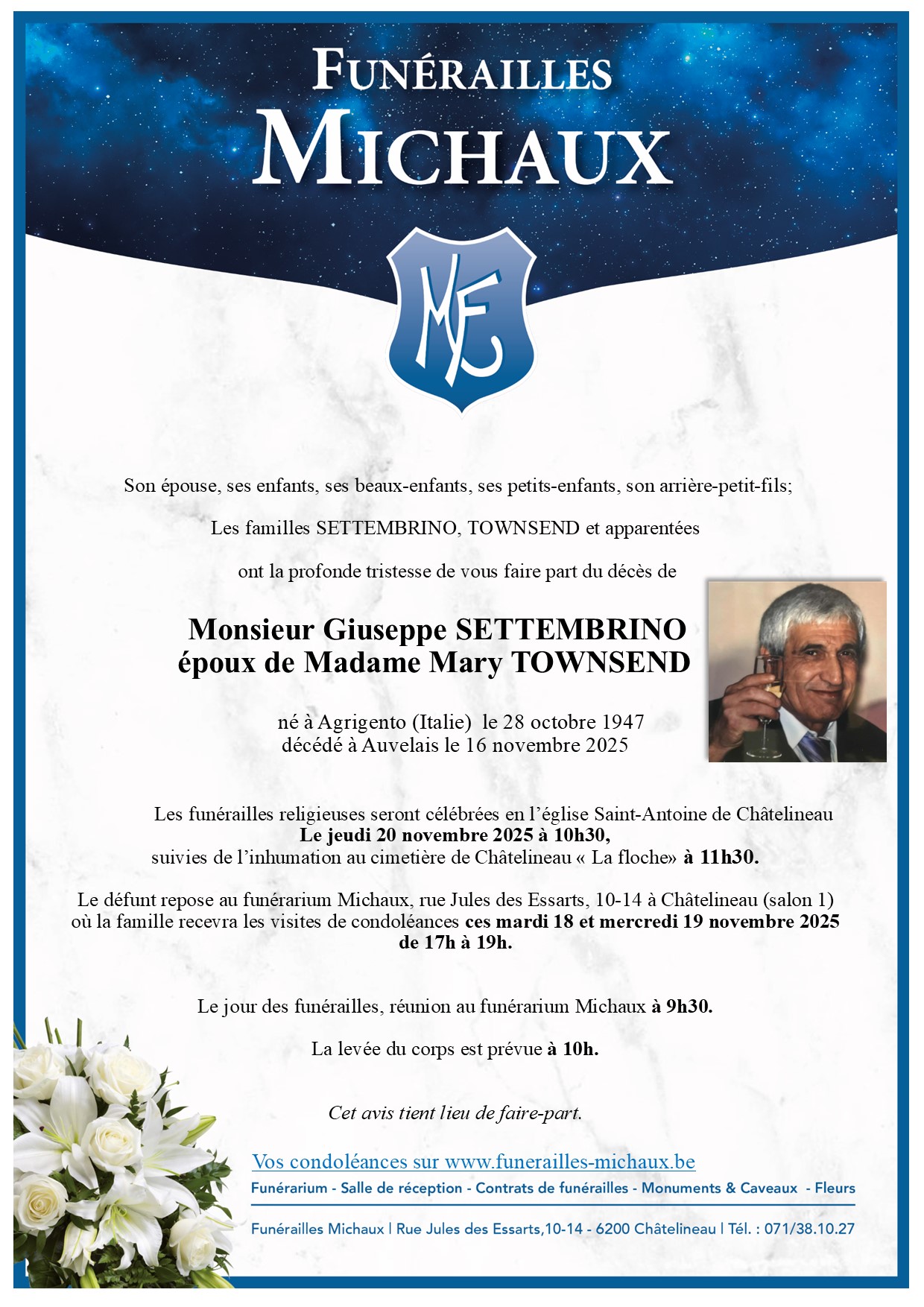 09:30 - Funérarium Michaux